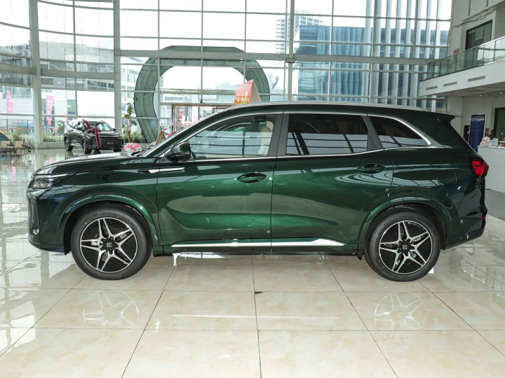 再来看车身侧面部分,作为中型 SUV,车身线条以实用为核心,一条上扬的腰线从前大灯延伸至后尾灯,视觉上拉长车身比例,配合窗框镀铬装饰条与封闭式窗框设计,提升整体质感。18 英寸双色轮毂为中高配专属,轮胎规格兼顾抓地力与滤震需求,而 200mm 左右的离地间隙,使其能轻松应对低附着湿滑路面、鹅卵石路面等复杂路况,通过性接近越野车水平。车身提供极光绿、极夜黑等五种自然光影配色,其中极光绿在不同光线下呈现深邃优雅的质感,深受年轻家庭喜爱。值得一提的是,车门采用较大开口角度设计,配合较低的门槛高度,老人弯腰上车、儿童跨坐入座都更轻松,细节处彰显家用属性。
